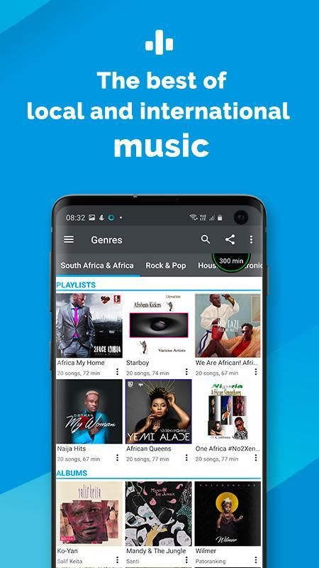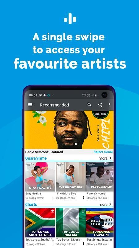 ● Antarmuka yang mudah digunakan dengan pencarian, daftar putar & musik yang sedang tren.