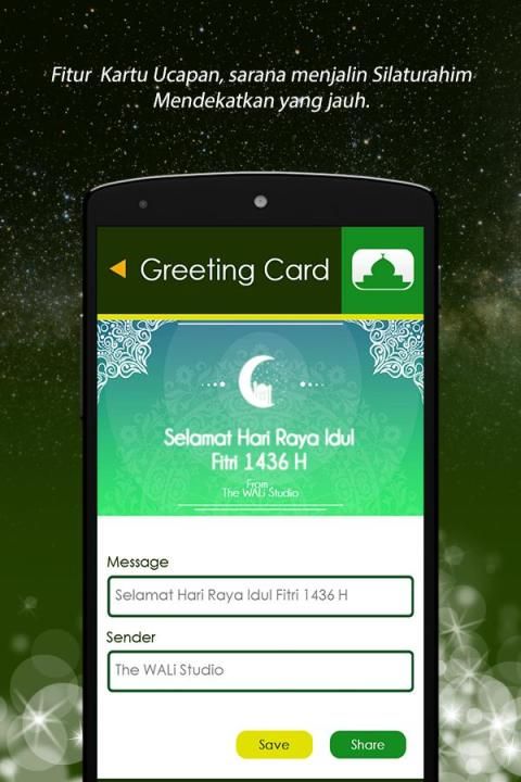 Ingin mengirim kartu ucapan pada teman atau keluarga jauh pada hari besar Islam ? Tidak perlu lagi mencetak kartu ucapan. Kamu dapat menggunakan fitur ini, ganti nama dan kirim ke teman dan keluarga menggunakan media sosial. Kartu ucapan mempunyai desain yang bagus dan cocok dengan tema Islam.