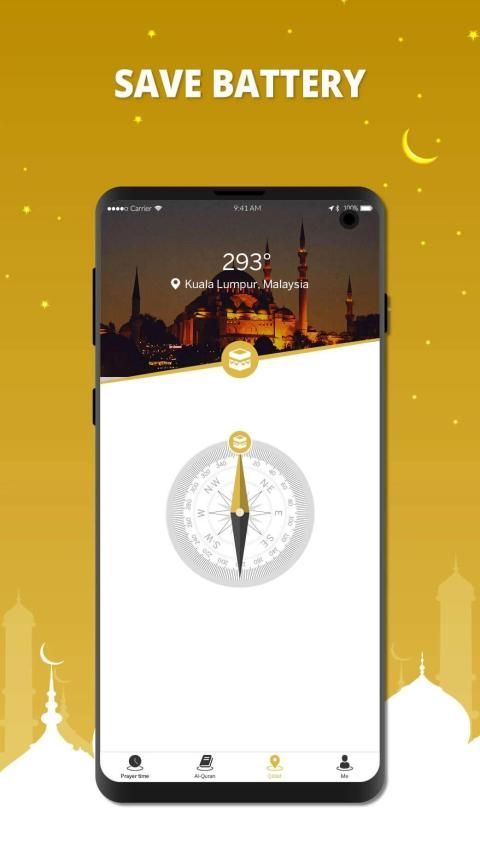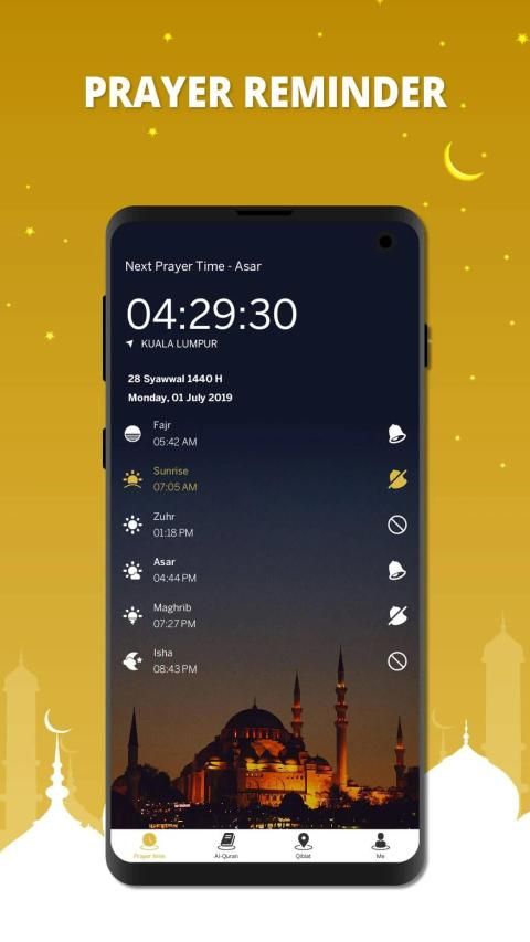 A light All in one Muslim App with features of prayer times, Qibla, quran, Qiblat.