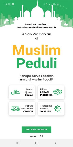 Muslim Peduli adalah aplikasi yang mempermudahkan kaum muslimin dan muslimat untuk bersedekah dalam bentuk makanan melalui masjid yang diinginkan.