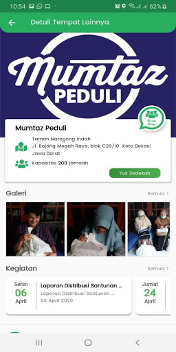 Donasi, Muslimin dan muslimat dapat berdonasi untuk membantu pengembangan sarana dan prasarana masjid atau pesantren yang terdaftar di Aplikasi Muslim Peduli.