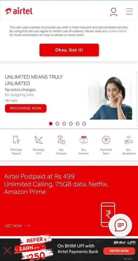Airtel Home Page