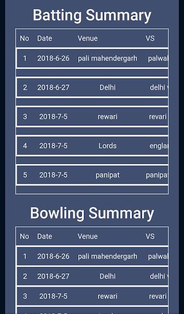 Pemain kriket kami harus menjaga pembawa kriket mereka dengan menulis di buku catatan. Tetapi ini cukup sulit untuk mengelola semua hal di notebook. Di sini Anda dapat dengan mudah mempertahankan semua kartu laporan operator pencocokan kriket Anda. Anda hanya perlu menambahkan kecocokan satu per satu di sini dan Anda akan mendapatkan semua data pertandingan hanya dengan sekali klik.