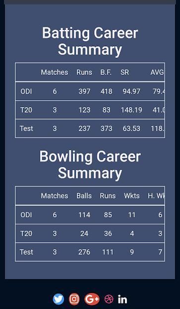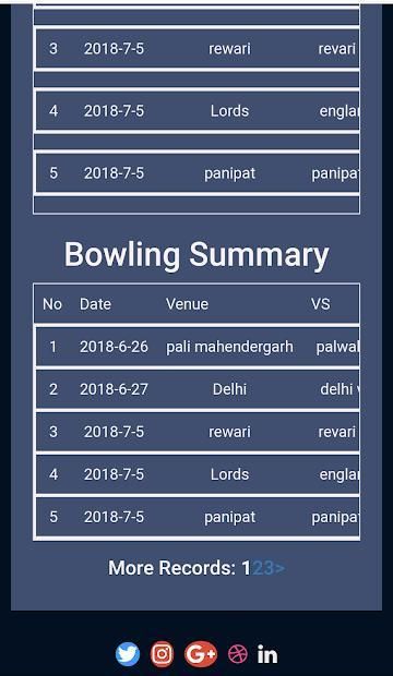 Anda dapat menambahkan semua data Anda berarti semua data format pertandingan kriket seperti ODI's T20 dan menguji kecocokan pertandingan dengan mudah di situs ini. Semua pengguna situs ini juga dapat dengan mudah menyimpan statistik semua format pemainnya di sini. Jika Anda serba bisa maka Anda dapat menambahkan data batting dan bowling Anda secara terpisah. Tambahkan situs Skor Saya juga memungkinkan Anda untuk data data batting dan bowling data Anda.