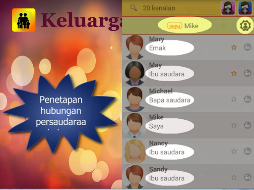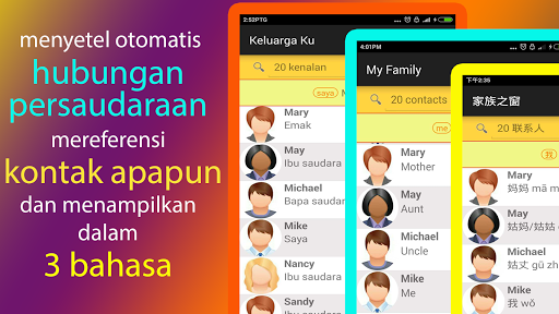 ● Hubungan persuadaraan dapat ditetapkan dalam Bahasa Melayu, Bahasa Inggelis atau Mandarin.