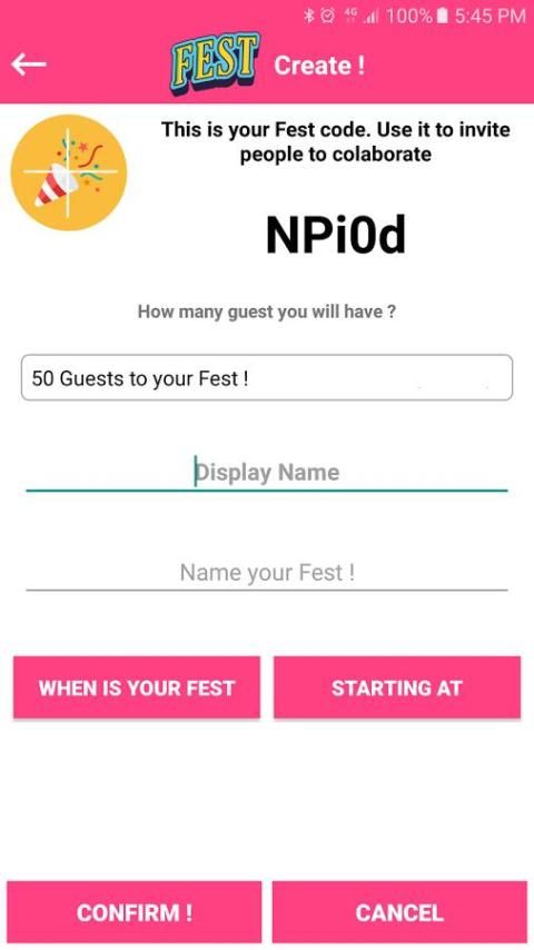 MENCIPTAKAN: My Fest! Memungkinkan Anda untuk membuat bagian umum untuk semua tamu Anda, yang bisa diajak ke dalam dengan berbagi Anda unik My Fest! kode.