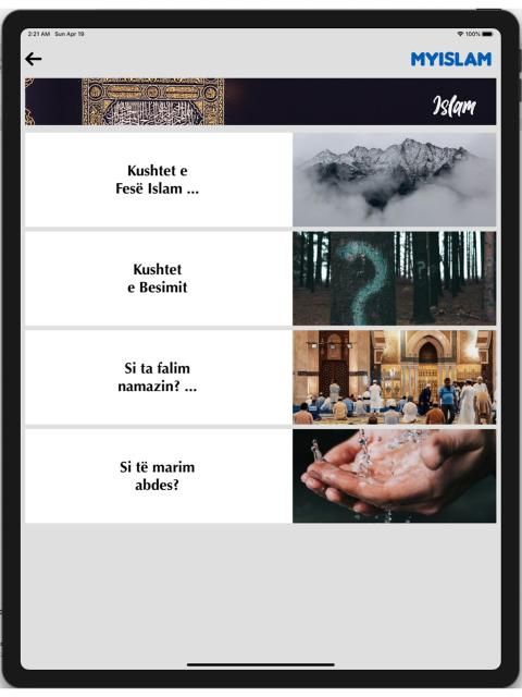 Aplikacion edukativ fetar per secilin musliman. Ky aplikacion sherben per njohuri te pergjithshme te fese islame, ku secili mund te mer dituri te pergjithshme rreth islamit, ne te cilin perfshihen: