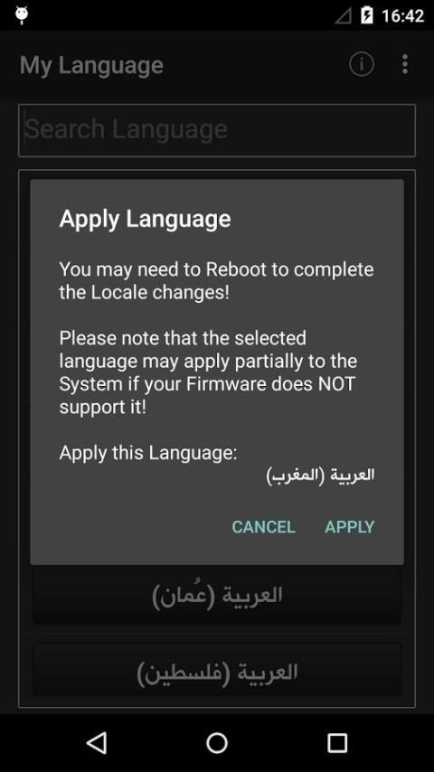 Dengan antarmuka yang mudah digunakan, hanya mencari atau scroll ke bahasa Anda, pilih dan itu dilakukan! perubahan Lokal diterapkan segera dengan tidak perlu reboot (tapi beberapa aplikasi Sistem UI mungkin memerlukan reboot untuk menyelesaikan perubahan membangun lebih tua).