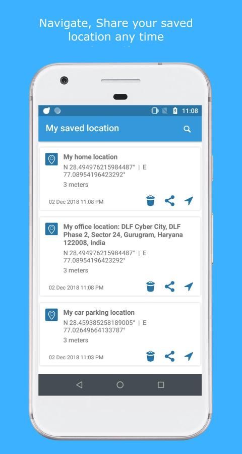 * Location saved you saved for future use can we used to share & navigate the navigation from your current location.