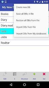 Aplikasi ini merupakan pengembangan lebih lanjut dari aplikasi "My Database" (https://play.google.com/store/apps/details?id=com.vadimk.dbs2). Aplikasi ini memungkinkan Anda untuk dengan mudah membuat dan mengelola data Anda. Ini memiliki banyak fitur baru, termasuk kerja kolektif dengan database yang sama.