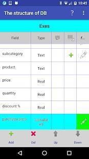 This application makes it easy to create your own databases; each of them has its own set of fields of various types (text, number, phone number, photo, location, etc.)