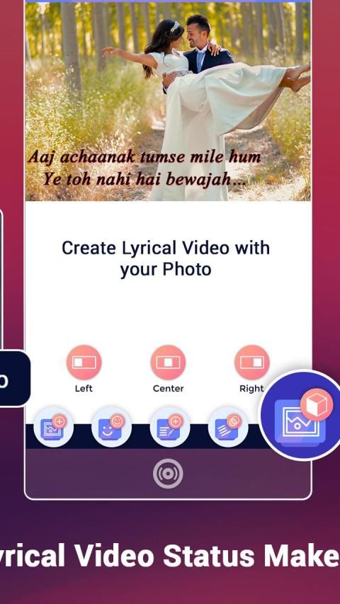 aplikasi ini memiliki konsep sesuatu yang baru Anda dapat membuat video liris foto indah Anda sendiri.