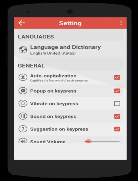●● Keyboard pengaturan pers Key sebagai suara, getaran dll