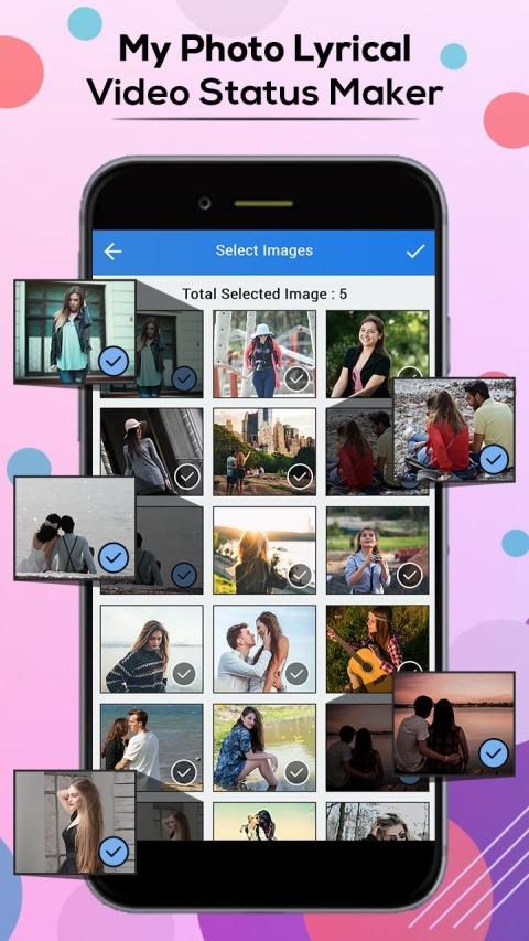 My Photo Lyrical Video Status Maker memungkinkan Anda memilih gambar favorit dan menambahkan lirik lagu favorit Anda dari koleksi lagu.