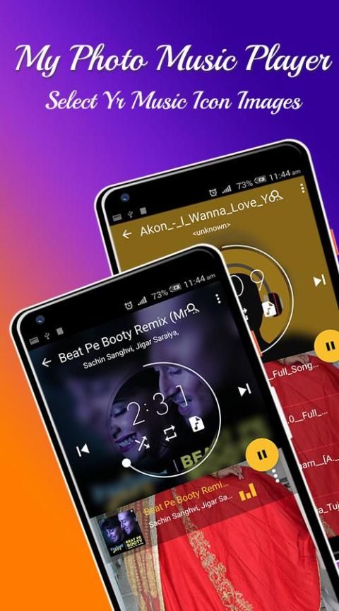 Mengubah visualisasi pemutar musik Anda dengan mudah dengan My Photo Music Player pembuat dalam hitungan detik. Instal semua baru My Photo Music Player untuk pengalaman terbaik pemutaran musik. Juga menyediakan daftar lagu seperti Artis, Album, Folder dan serta playlist. Dan mencari lagu akses yang sangat mudah dan cepat.