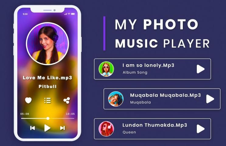 make your personal image as background of your music player.download the all new my photo music player app and set your custom photo with any song playback background easily.