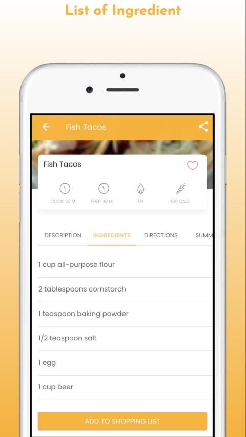 - There is one feature called Shopping List, so you can add your ingredients list in shopping list and it'll help you while you bring items from Mall or Grocery