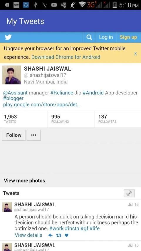 This is a twitter based app in which all tweets related to social life is being laid down for the enhancement of social outlook.
