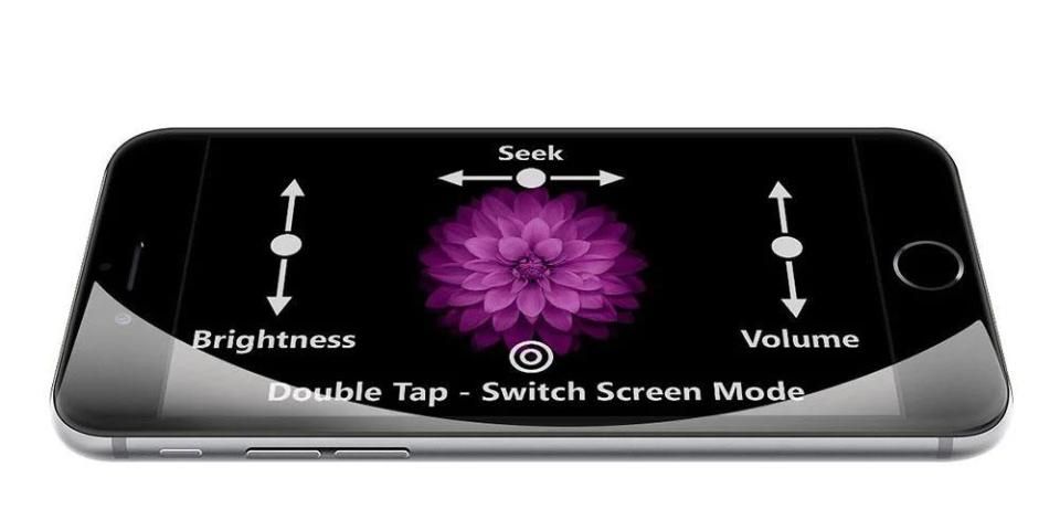Anda dapat mengontrol volume, brightness dan progress bar dengan mencubit dan menggesekkan di layar.