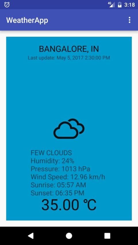 Anda dapat menemukan cuaca saat ini kota Anda dengan Kelembaban, Tekanan, Kecepatan Angin, matahari terbit dan matahari terbenam waktu dari aplikasi ini. Aplikasi ini sangat mudah digunakan dan user friendly. Anda dapat menemukan semua informasi cuaca di satu kali klik.