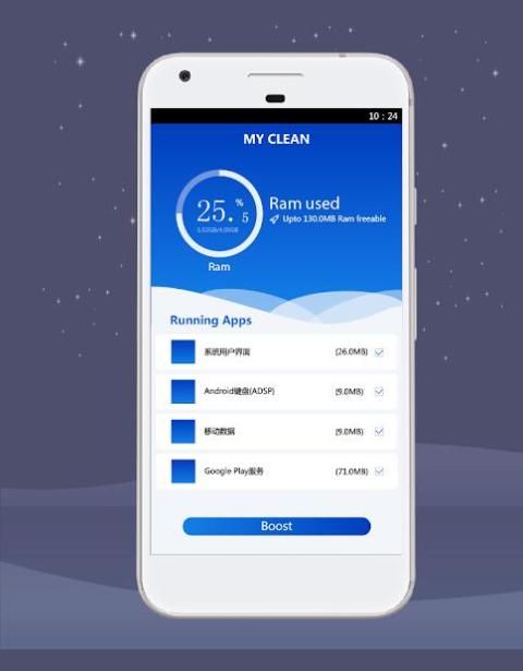 My Clean is the latest and most popular phone cleaner app that cleans junk files in system caches, and optimize tool that boosts your phone system speed. If you ever wonder why your phone slows down after only a few months of owning it and don't know anything about cached data clean, junk files clean, ram booster, memory dump, or system optimum, then this is a perfect choice to speedup your slow phone. You don't need to learn skills and knowledges how to clean cache, optimize battery power, system garbage clean up, ram booster, or temp file clean. My Clean finishes all jobs above by one easy click, so you can clean up junk files while sipping on your morning coffee or waiting a bus. My Clean is one of the most convenient ram booster, battery booster, memory clean, and quickest cleaner apps to use. Just tap the one-click boost and let It do all the work to speed up your phone to maximum status. If you find your device overheat, drain battery, dump, or feel laggy time and again? My Clean is the magic master of junk file cleaner, boosting phone speed, memory master management tool, clear master, and cache master. This cleaner app will clear junk files that slow down your phone, clear cached files that drain your battery, and kill background tasks that can freeze or make your phone feel laggy. My Clean is an all-in-one master cleaning app with memory boost, cleaner cache, move apps, and app management. Features Memory Boost is The easiest one tap boost solution to clean all the junk files and clear cached files that would normally slow down your phone. Speed up your phone by doing a quick memory clean that involves doing a full clean sweep. Clean Cache will boost ram speed by the free ram booster featured included in this app. Your games and apps will run faster as memory master will optimize and boost your phone ram. App Manager and move apps are The best app optimization tools that lets you kill background tasks that would cause your phone to dump. My Clean is the ultimate speed booster tool to clean up junk files on phone and speed up phone. Try the one tap boost device cleaner and say goodbye to laggy slow device speeds. Clean junk files, keep your device from overheating, and optimize your device performance with ram booster speed up. Enjoy the coolest New My Clean and easy ram booster for free. Download the fastest memory cleaner booster Now and enjoy your phone play.