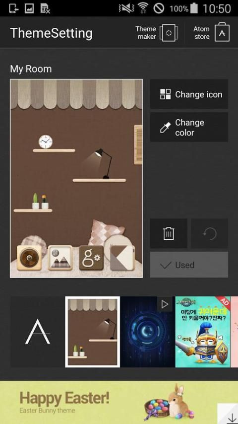 Dengan tema, paket ikon dan widgets yang diperbaharui setiap minggu; bervariasi dari desain yang modern, sederhana sampai ilustrasi seniman yang artistik, Anda dapat menghias layar telepon genggam Anda setiap hari: Cari Atom Store di tab pencarian!!