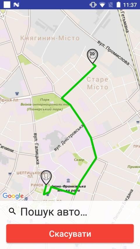 - Відображення на карті місцезнаходження машин таксистів в реальному часі;