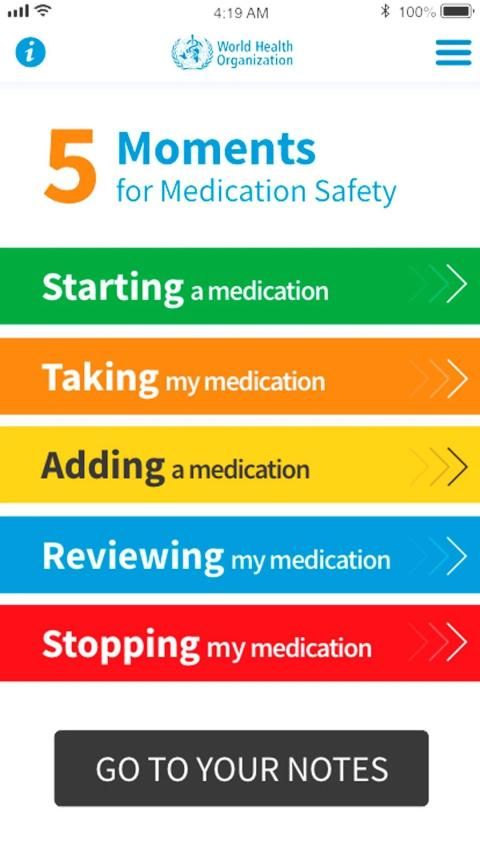 The WHO 5 Moments for Medication Safety app will guide you through the 5 key moments where your action can reduce the risk of medication-related harm.