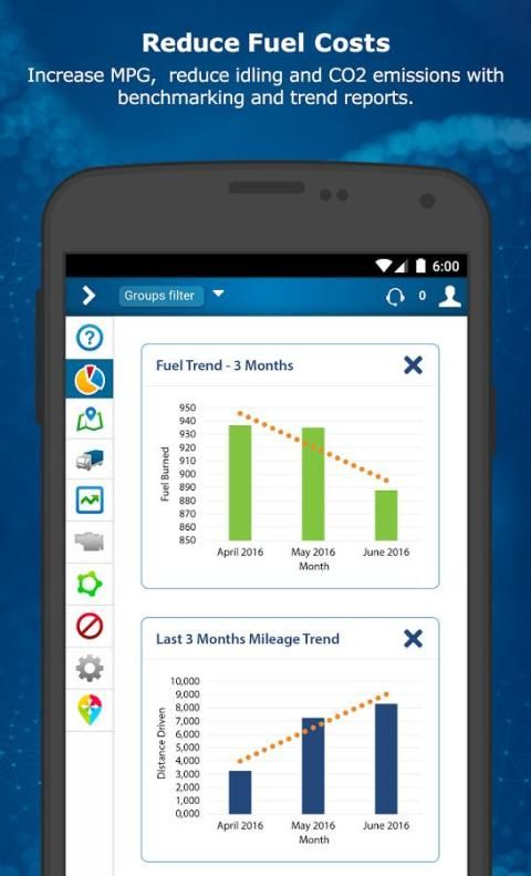 laporan dashboard membuatnya mudah untuk memvisualisasikan tren dalam konsumsi bahan bakar, idling, dan banyak lagi. Optimalkan rute dan secara proaktif mengelola pemeliharaan kendaraan. Tinggal sesuai dengan Jam Layanan (HOS), Dvir, and Driver ID. MyGeotab membantu Anda mengurangi biaya bahan bakar, memaksimalkan uptime, dan meningkatkan keselamatan armada.