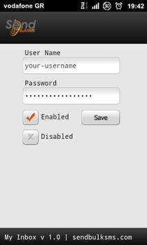 MyInbox is an application that forwards your incoming SMS at your account in sendbulksms.com. Using your account at sendbulksms.com you can reply to the original sender via your browser using your mobile phone number as sender. Replies will be received in both your mobile phone and your account.