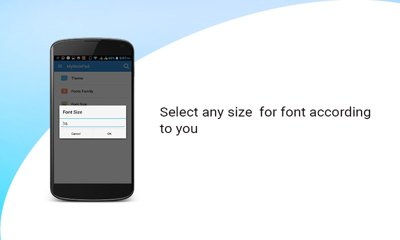 In the fast moving world we all have hectic schedule and daily routine so it's important to make a proper schedule for this we have come up with important applications and its attractive features For easy remembrance and small tips like what are your likes and dislikes .You can share this application, Maintain your notes with colorful writing skills and synopsis for the thick and heavy books when you don't want to go through all the heavy books and its total worth for officials ,Students and all the different streams in fact for the housewife also. Key features of the application 1.Home page will be the first interactive page . 2.To create a notes go with the option of create notes. 3.Get a title and mention in by entering the title 4.Start by typing the notes . 5.Save your Notes by just a simple click on the blue circle (right bottom corner of the screen). 6.Get an attractive themes for all your Notes. 7.Set the different fonts Size for your Notes. 8.All the different collections of writing styles. Save your time and hence make yourself more productive that's all for the My Notepad.
