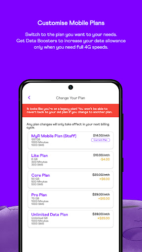 Lacak penggunaan, ganti rencana, dapatkan add-on atau perbarui detail akun Anda dengan mudah dengan aplikasi myRepublic one-stop, no-frex.