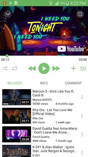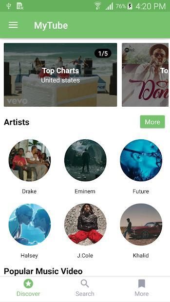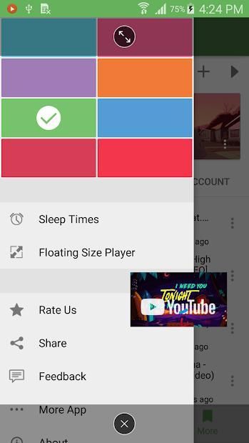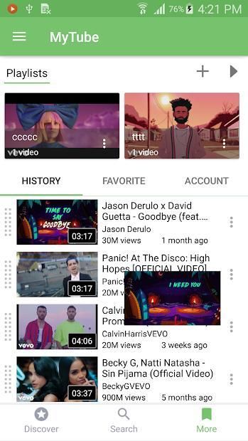 MyTube provides multitasking experience: always on top popup player helps you to use your apps while playing non-stop YouTube free music.