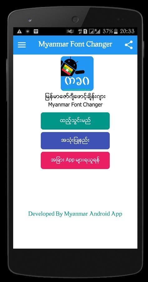 I'm glad to tell you that 30,000+ users downloaded Myanmar Font Changer latest version on 9Apps for free every week! Once you've used it, you'll be attracted. This hot app was released on 2017-07-15. Be sure that you check your current app before you start a run.