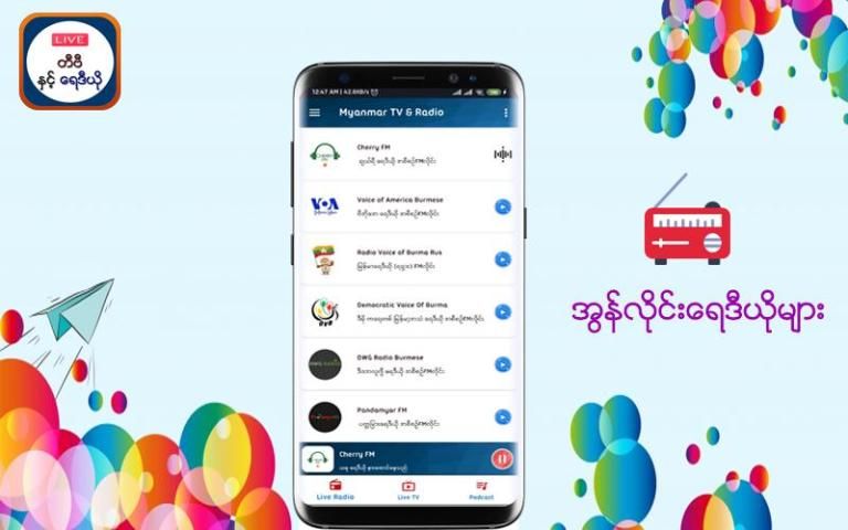 Ini juga memberi Anda kesempatan mendengarkan stasiun Radio online dari negara mana pun dan menonton video Myanmar yang menarik. Ini memiliki fitur yang menyediakan akses langsung ke saluran TV favorit Anda dari perangkat seluler Anda di mana saja dan kapan saja.