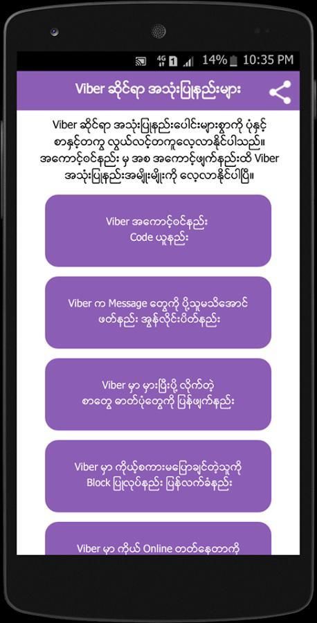 Viber ဆိုင္ ရာ အ သံုး ျ ပဳ နည္း ေပါင္း မ် ား စြာ ကို ပံု နွ င့ ္ စာႏ ွ င့ ္တ ကြ လြယ္ လ င့ ္တ ကူေ လ့ လာ နိုင္ တ့ ဲ ေဆာ့ 0 ဲေ လး ပါ.