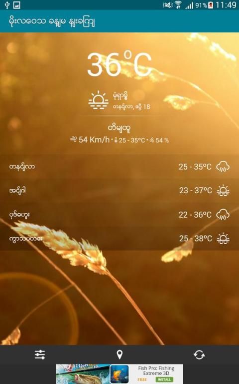 aplikasi cuaca paling populer Myanmar. Install cuaca dan menggunakan Myanmar Weather Widget terbaik untuk selalu mempersiapkan diri untuk hari baru Anda.