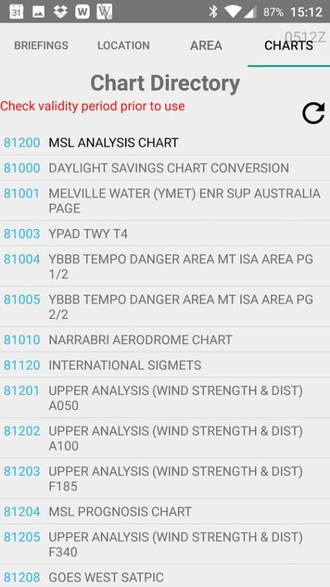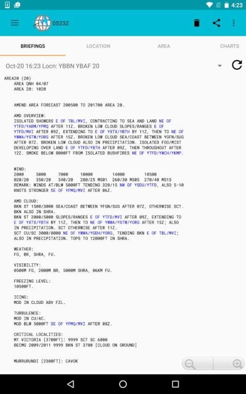 Briefing dipertahankan pada perangkat (tapi ditandai sebagai usang setelah jangka waktu) sehingga Anda dapat dengan mudah merujuk pada briefing sebelumnya, atau berbagi melalui email atau aplikasi lainnya. Sebuah tombol refresh cepat akan mendapatkan versi terbaru dari setiap pengarahan sebelumnya - secara penuh, bukan hanya perubahan.