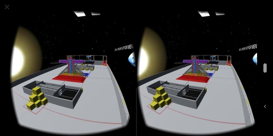 This apps allows users with a Google Cardboard VR headset to explore the FIRST Robotics Competition field completely in Virtual Reality. Using the Google Cardboard button users are able to “fly” around the FRC field to view whichever angles they want in VR to gain a better understanding of the FRC Field.
