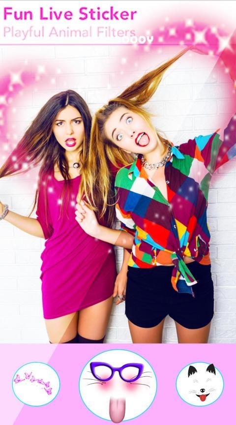 in this app you will find all things,.....:animal beauty camera dozens earrings editor effects face filters fun funny hairstyle live makeup mask motion photo real selfie snap stickers swap sweetcamera tools videos