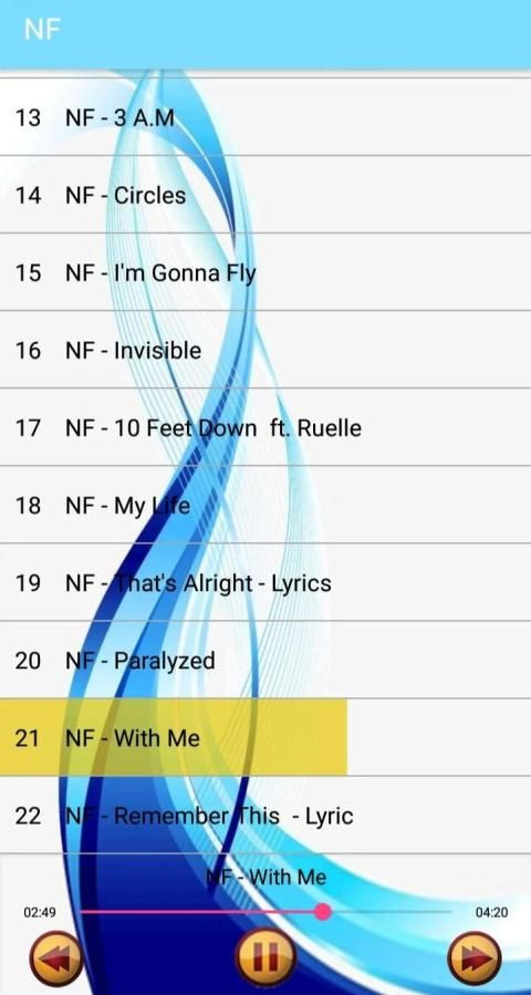 Applies great to American rapper " NF " Includes the best songs that have known great success.