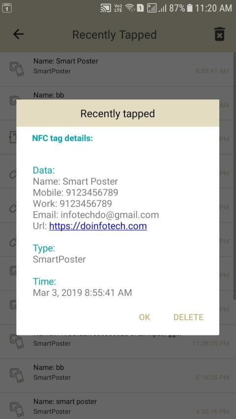 NFC Smart Poster is an free, simple and intuitive app which allows you to read NFC smart posters on go and stores them into recently tapped items(history). You could open them and find out when you free.