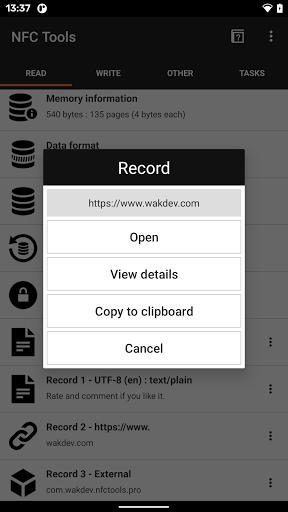 NFC Tools adalah aplikasi yang memungkinkan Anda membaca, menulis, dan memprogram tugas pada tag NFC Anda dan chip NFC lainnya yang kompatibel.