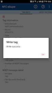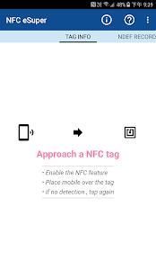NFC eSuper adalah alat aplikasi yang membaca / menulis data antara tag NFC dan lainnya RFID chip yang kompatibel.