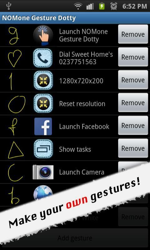Gesture Dotty enhances your android experience significantly. Never has calling friends or bringing up your favorite application been easier. Wherever you are, with a touch and a gesture you can: