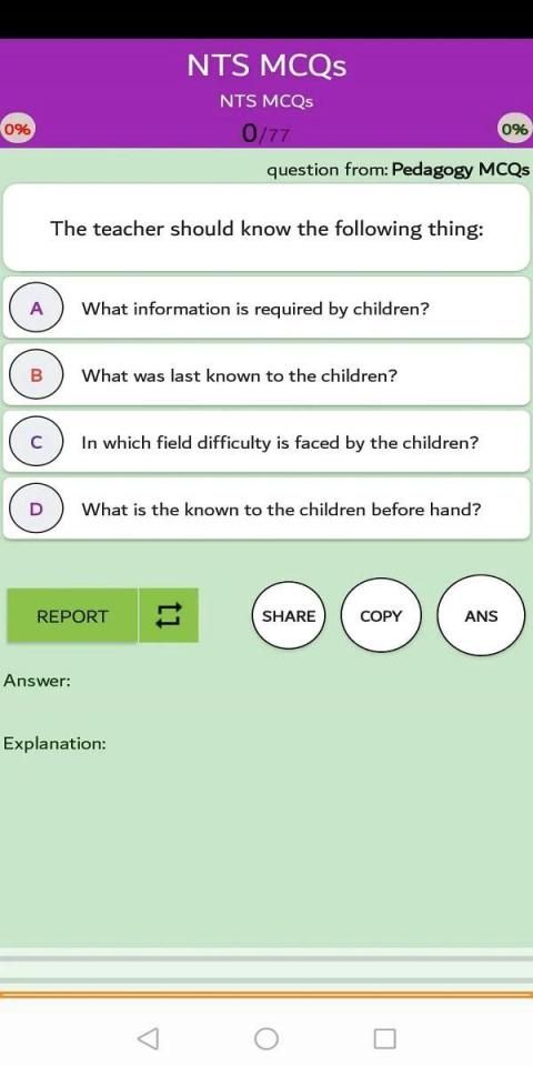 NTS MCQs is OFFLINE and FREE app. which can help you to prepare yourself for any type of test in pakistan.