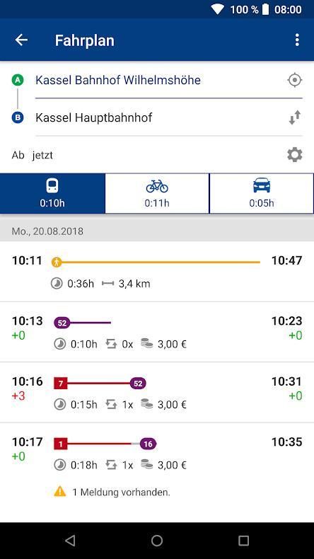 The NVV-App is the mobile timetable information for all means of transport, such as train, RegioTram, tram, BUS, AST and Mobilfalt in the area of the Nordhessischer VerkehrsVerbund (Stadt and Kreis Kassel, Kreis Waldeck-Frankenberg, Schwalm-Eder-Kreis, Kreis Hersfeld Rotenburg, Werra-Meißner-Kreis, Hann. Münden, Warburg).