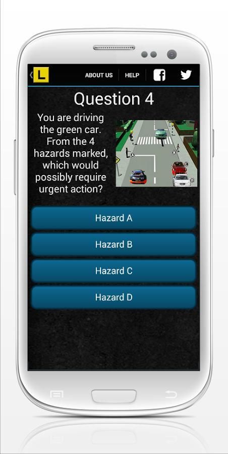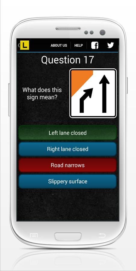 Pertanyaan disajikan dalam format yang mudah dibaca multichoice yang akan membantu mempersiapkan Anda untuk tes yang sesungguhnya. Untuk setiap pertanyaan Anda menjawab app akan memberitahu Anda apakah Anda mendapatkannya benar, dan jika tidak, yang jawabannya adalah orang yang tepat.
