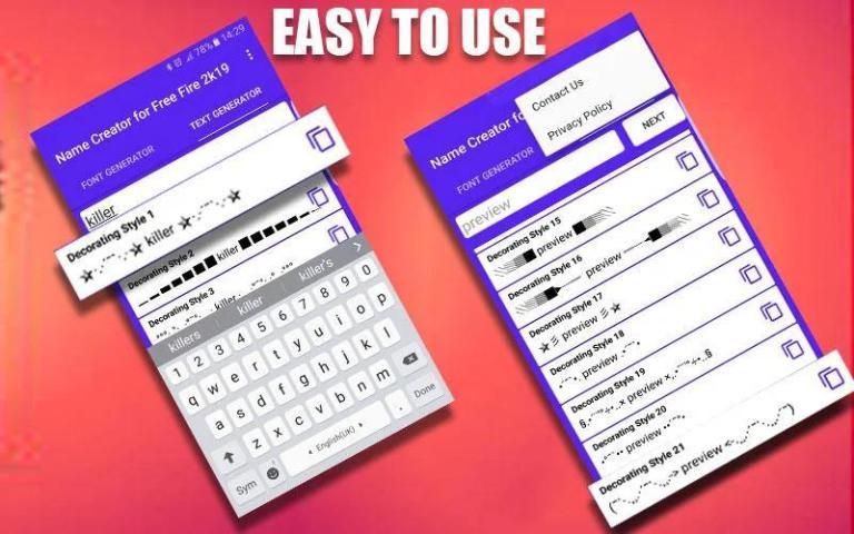 Main features of Name Creator For freefire, Nickname, Name Maker: