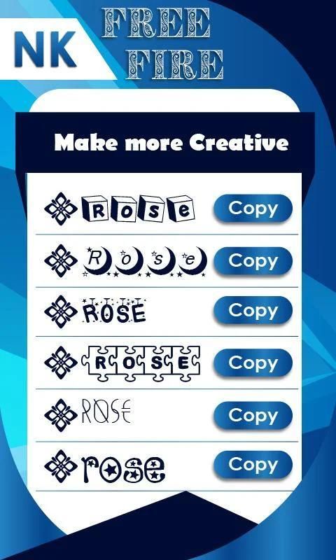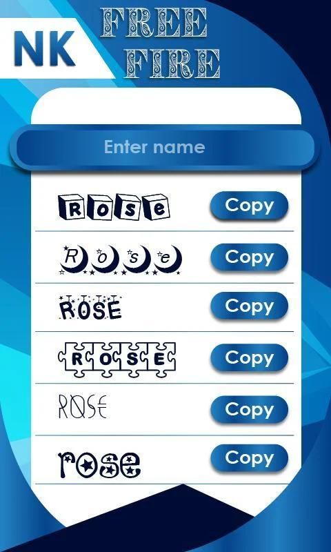 Dengan aplikasi ini Anda dapat memperoleh banyak kombinasi nama yang dapat Anda salin untuk menggunakannya saat Anda mengubahnya.